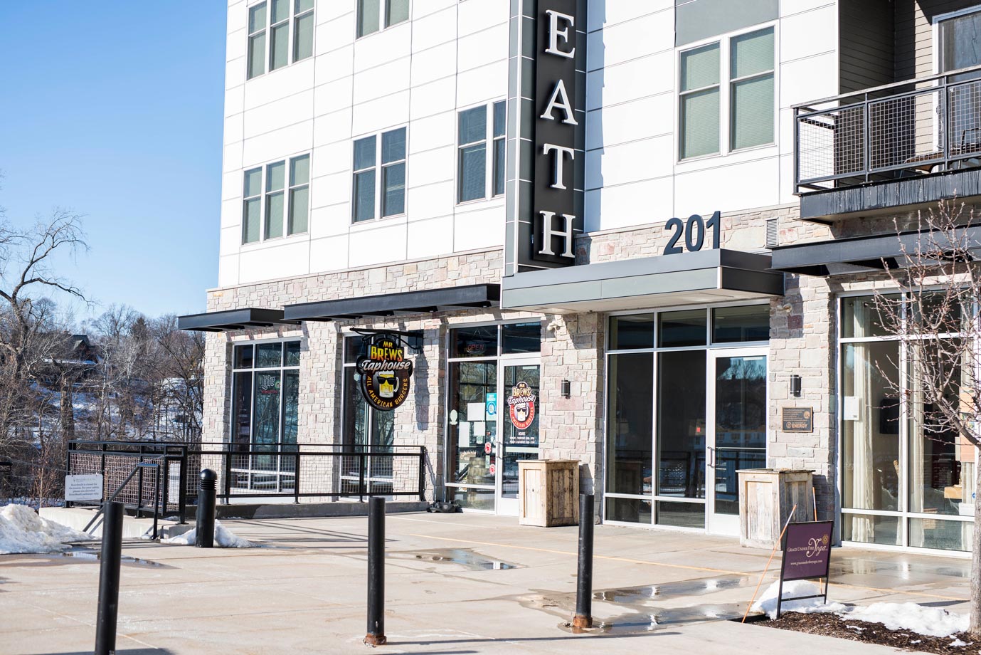Mr. Brews Taphouse is located in downtown Appleton, Wisconsin, on the Fox River just below the College Avenue bridge between the Banta Bowl and Telulah Park. One of Appleton’s oldest and now newest neighborhoods, the land has been a center of commerce since the 1850s. One legacy of this rich industrial past is one of the nation’s oldest hydro-electric facilities. We provide a small-town feel featuring spectacular views, including windows on three sides for watching the river, eagles, and wildlife.